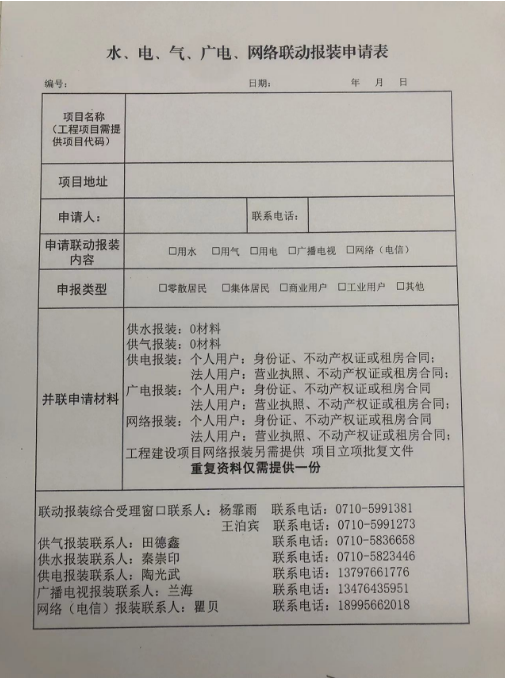 (4)拨打我公司24小时热线服务0710-5836867或0710-5823446进行报装。
